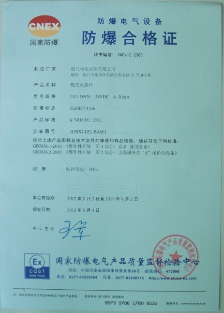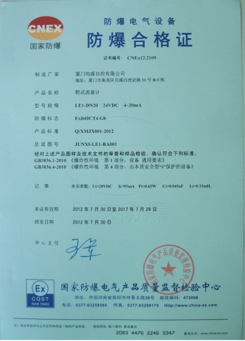靶式流量計(jì)隔爆型檢驗(yàn)報(bào)告